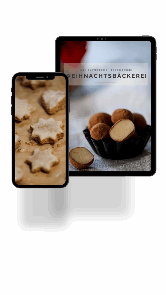 Kaufe jetzt mein neues E-Book mit 21 Rezepten für die glutenfreie Weihnachtsbäckerei. Da bekommst du genaue Anleitungen für u.a. Vanillekipferl, Zimtsterne, Lebkuchen, Butterplätzchen, Spekulatius oder auch Baumkuchen und Geschenkideen für deine Lieben. Schau dir unten das Inhaltsverzeichnis und das Beispiel-Rezept aus dem Buch an, damit du genau weißt was du bekommst. Das alles bekommst du für einen Preis von 12,95€.